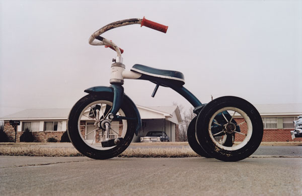This photograph is very interesting. The tricycle is the most important object in the image, but you notice the suburban area behind. When I look at this image, I get a horrible feeling. Maybe I have watched too many films, but the houses behind are meant to show the American street where there is the perfect neighbourhood with the perfect neighbours... but even the most perfect places have their secrets.